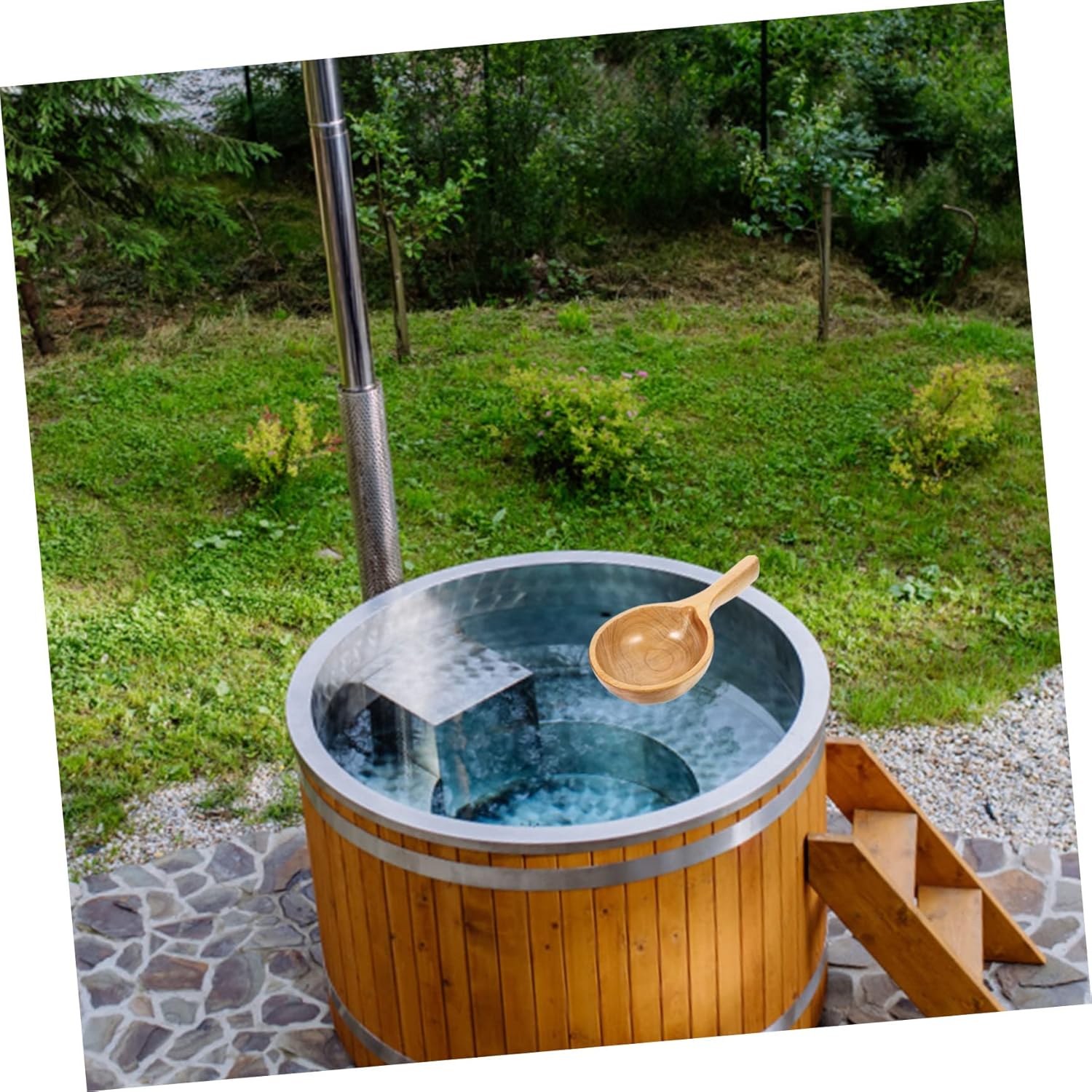 WOODEN SCOOP– It can be not only for scooping water in the kitchen, but also for watering flowers in the garden, or water ladle in bathroom/sauna room.